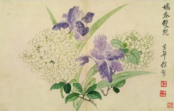 △娇春双艳。苕华馆制。