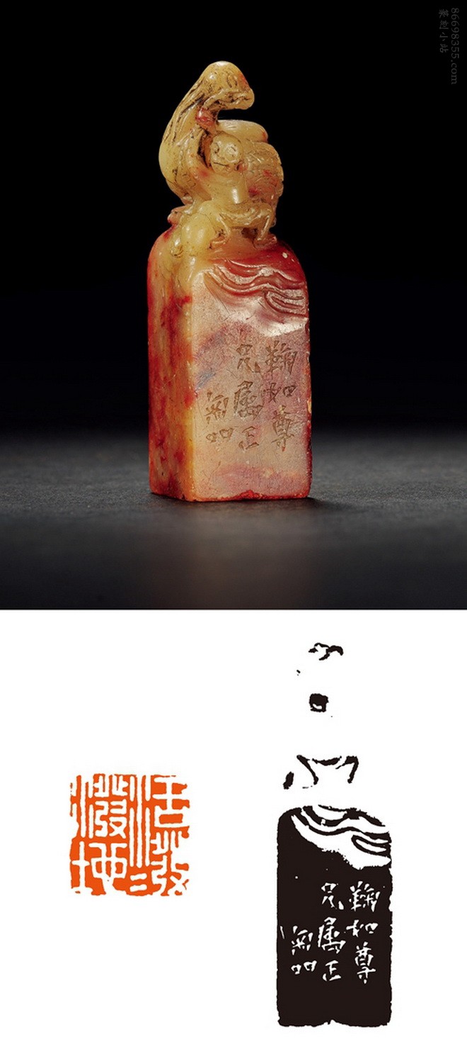 374 清·胡钁刻寿山石胡人驭鸟钮闲章