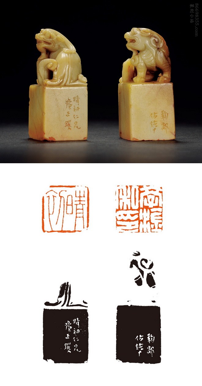 边款:1.晴初仁兄灋正,镢。 2.鞠邻仿钝丁。