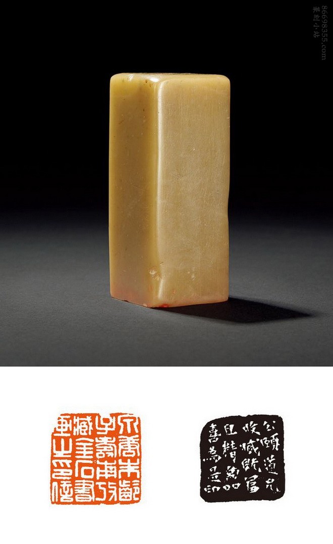 边款: 公颐道兄收藏既富且精,匊邻喜为是印。