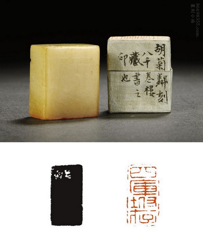 出版:1.《丁丑劫余印存》卷十九P6,1937年编。2.《胡匊邻印存》P89,人民美术出版社。3.《胡镢印谱》P8,上海书店出版社,1991年。4.《中国历代印风系列赵之谦印风(附胡镢)》P97,重庆出版社,1999年