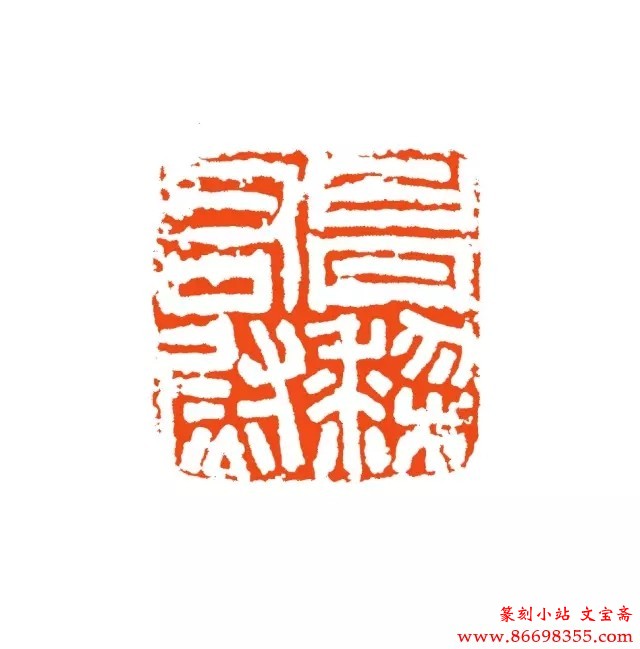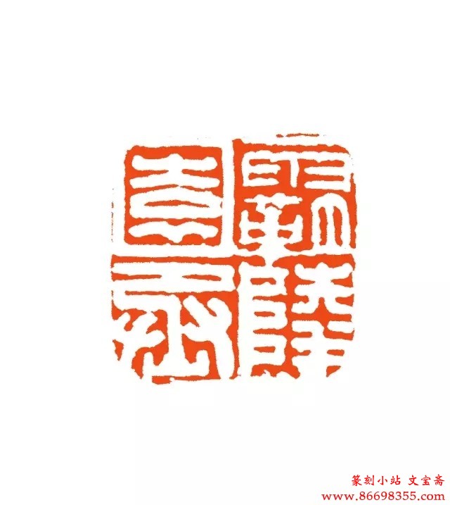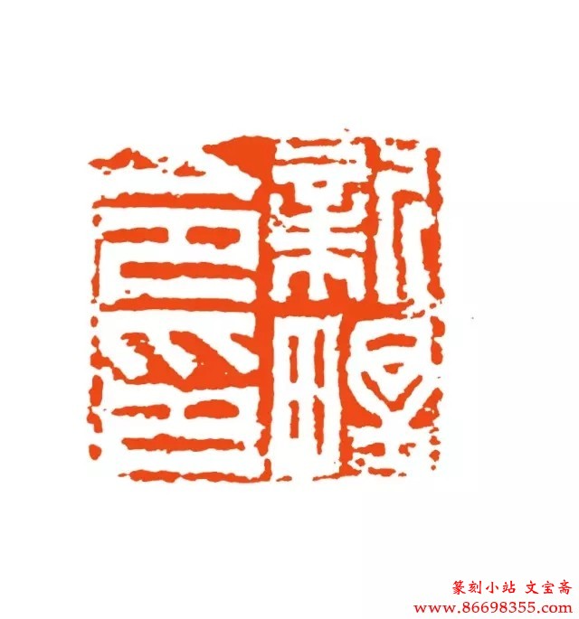 传世印章经过时间的磨砺,残缺磨损不可避免。也正是这样的磨砺,使得印面有了斑驳浑厚的特殊美感。这对篆刻创作是一个不可或缺的审美元素。此印的磨损主要集中在印章的四边四角,而印章中心部分的印面相对完好,形成了外虚内实的印面结构。虚处印面灵动透气,实处文字强悍有力,虛实对比,气韵生动。由此我们可以得到这样的经验:篆刻创作中印面做旧切不可到处皆“烂”,应当留出几处挺括的用刀,几笔强悍的笔道,这种不容置疑的确定性才是对“烂”的有益补充和升华。千载而下,吴昌硕深谙此道。