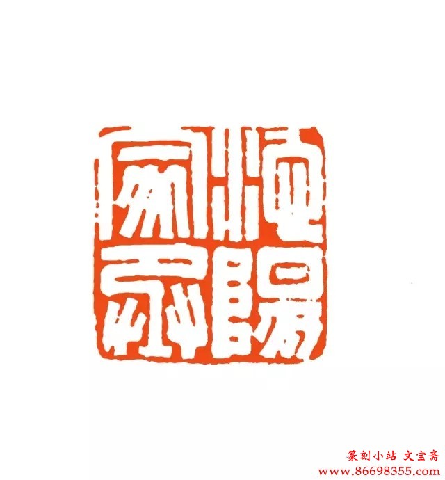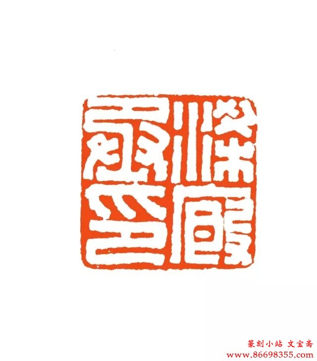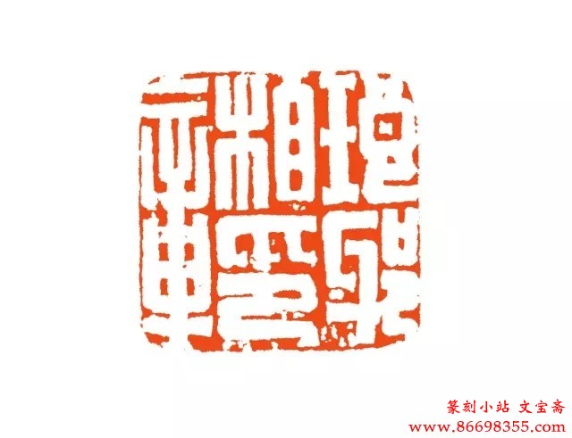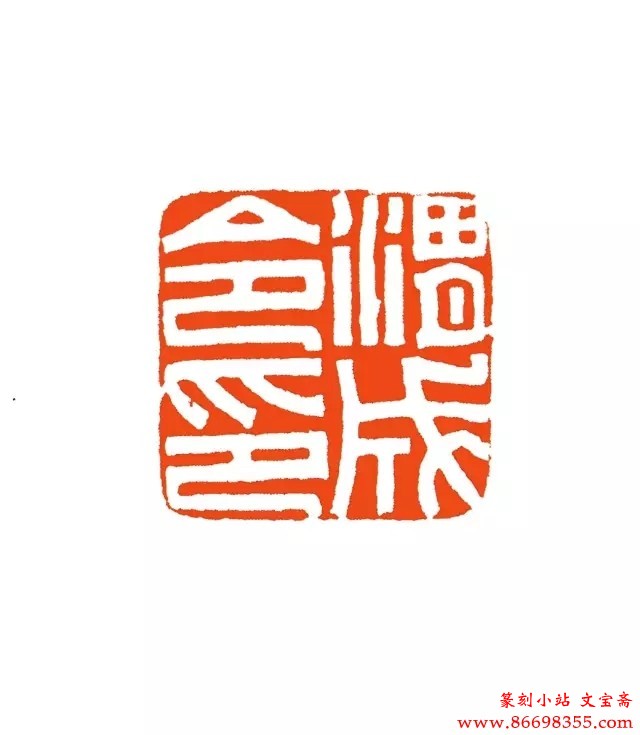 铜印残烂不尽在四边四角,有时会顺着笔道展开,而印面光亮如新。此印就是如此。四边四角的磨损残烂倒是常见,其笔道的腐蚀显出别样的韵味,让人想起黄宾虹篆书中宿墨、涨墨的神采。只有从“浑”字尚可看见些许本来面目一那种细劲挺拔的笔道,刀刀到位。看来篆刻创作中,刻出细劲笔道后,对其做进一步的破坏性处理也不失为一种到达浑厚的捷径。只是,做作与自然只在一线之间,不可不察。