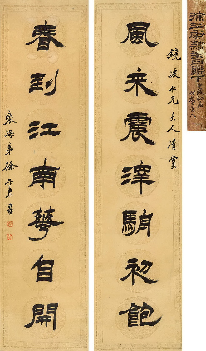 LOT 1568 徐三庚 隸書七言聯 甲戌(1874年)作