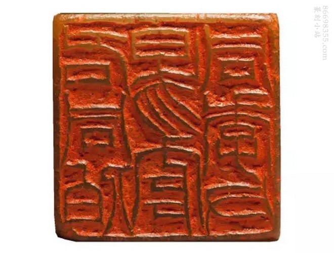 徐三庚刻广东绿印章,印文:名同伯阳官同季父,印面尺寸:3.8×3.8厘米,高5.3厘米,中国嘉德2017年春季拍卖会,清宁—国石篆刻艺术,成交价格36.8万。怀玉印室藏,印文隽永可诵朴美,可见徐氏早晚印风之转变。