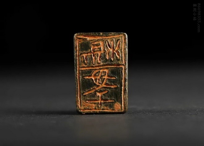 秦代推行“书同文”的政令,玺印文字、形制钮式趋向统一,在趋向精熟而未至精熟的过渡阶段,秦印表现出了极大的丰富性。金文遗韵、战国古风、先秦古隶、秦摹印篆、权量诏版,在秦印中都能觅得痕迹。在中国印章史上,秦印大多表现的是一种稚拙美、率意美、自然美。界格是秦印的显著特征,因印形不同而分别有“田”、“日”形之分。