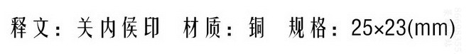 05 释文:关内侯印;材质:铜;规格:25×23(mm)