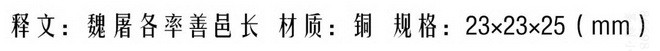 01 释文:魏屠各率善邑长;材质:铜;规格:23x23x25(mm)