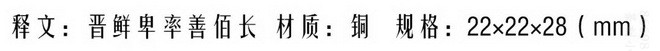 02 释文:晉鲜卑率善佰长;材质:铜;规格:22x22x28(mm)