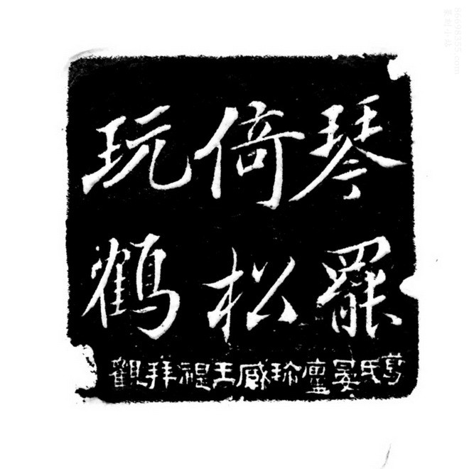 01 释文:琴罢倚松玩鹤;作者:文彭;材质:石;尺寸:34×34×79(mm)