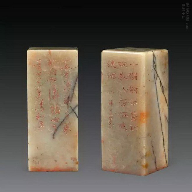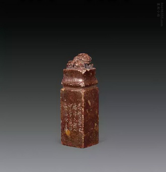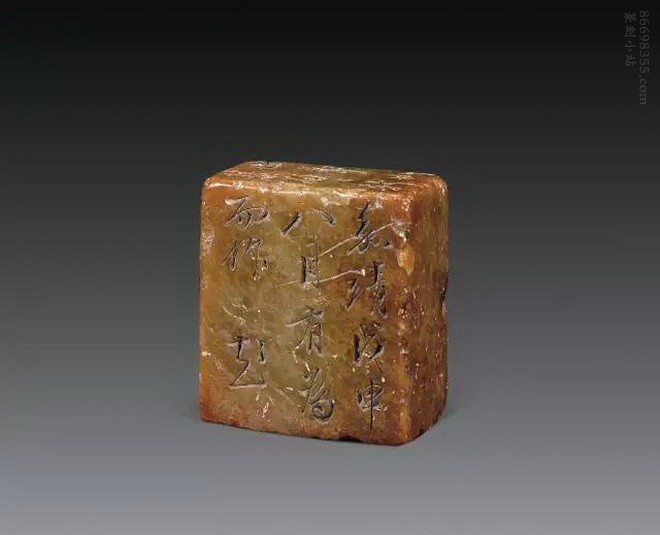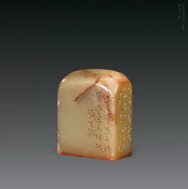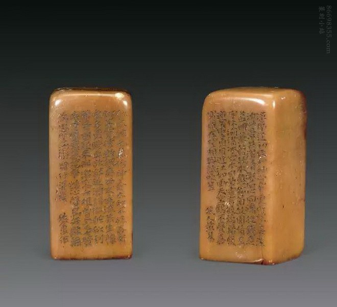 上海博物馆藏奚冈“频罗菴主”印,纵二五毫米,横二五毫米,边款亦同本印,为印史上著名的评论文字。“频罗菴”为清人粱同书号,奚冈称其为尊伯,故而为之治印绝不敢有所敷衍。