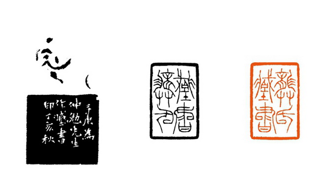边款:三庚为仲勉先生作藏书印,丁亥秋。