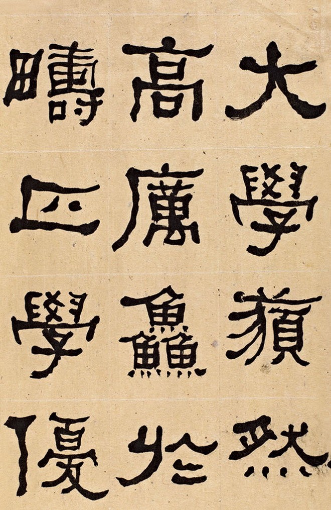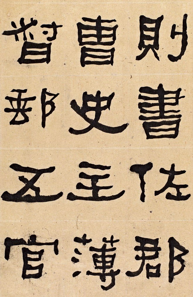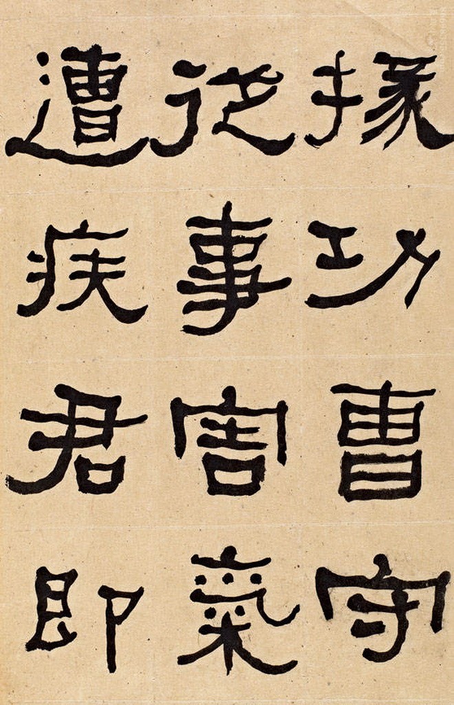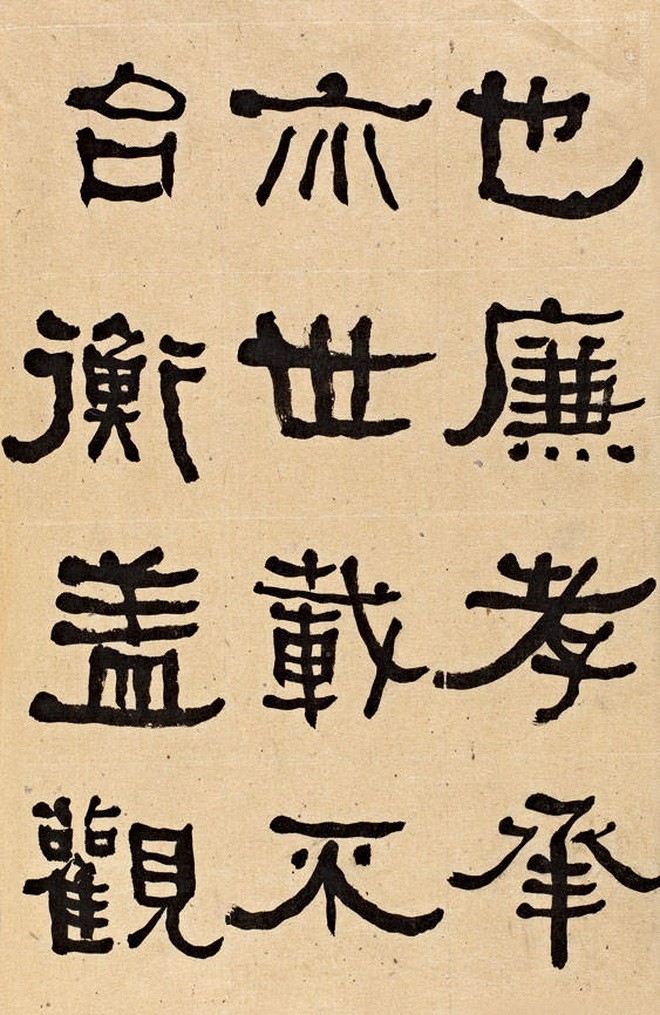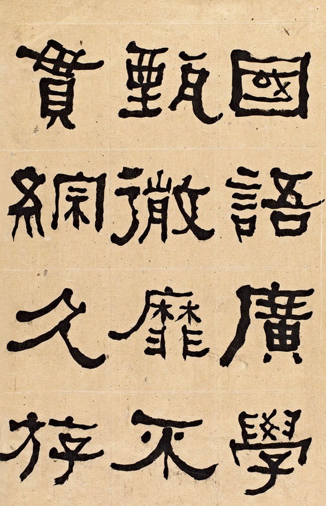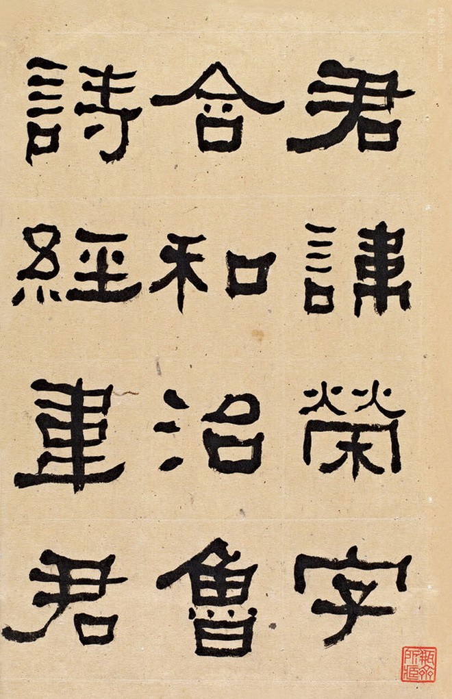 何绍基隶书,临汉武荣碑,计八页十六面,谭泽闿藏品 何绍基临汉《武荣碑》1862年作,线装一册,计八页十六面,每面三行,行四字,共隶书一百八十六字。民国年间为谭泽闿藏品,1926年谭氏提供上海商务印书馆影印出版,后入上海工艺品进出口公司库藏,书衣犹有“艺画”旧签,流传端绪分明。 由于此册近代不断翻印出版,影响书学甚巨,为存世最著名的何绍基隶书作品之一,极为珍贵难得。篆刻小站请您欣赏。 页码: 页 1, 页 2 印谱.教程.技法 - 分享 加微信获取:wenbaozhai365