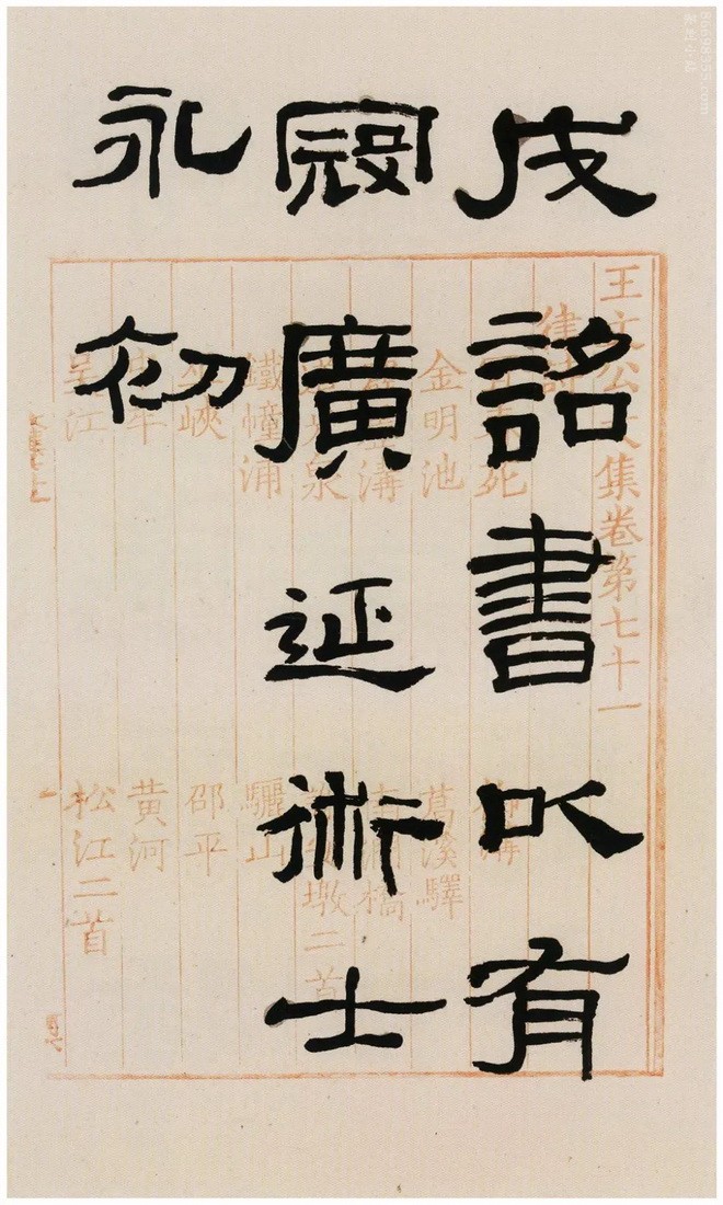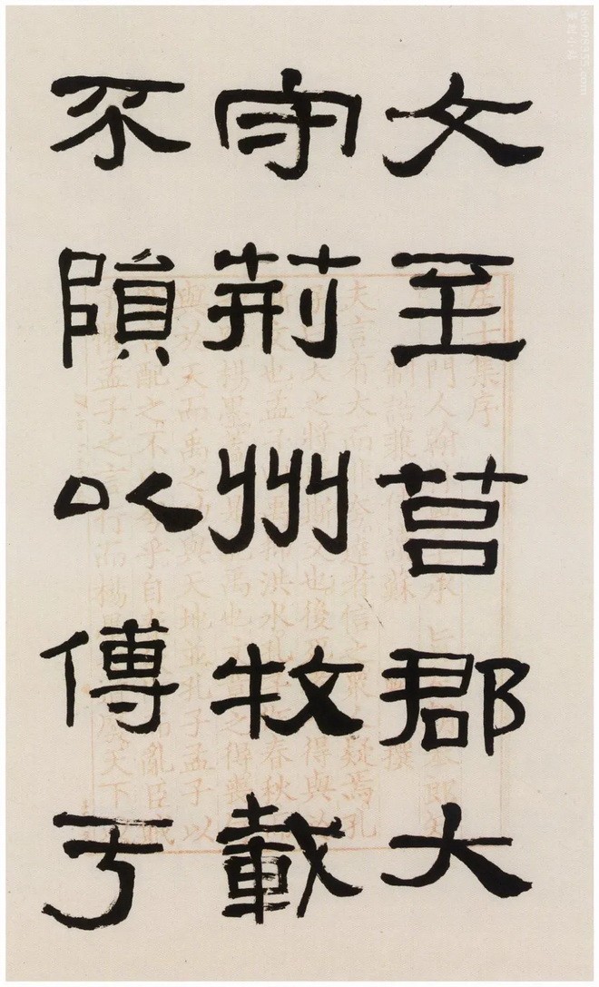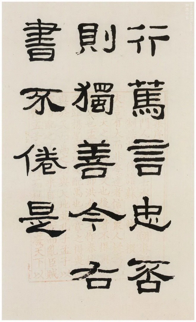 来楚生,来公曰:“书尽在笔法,法通皆书通。古之隶多从扁,而清以来,邓(石如)、赵(之谦)之隶从方,金(农)、吴(昌硕)之隶从长,各有其形,无所不可。”