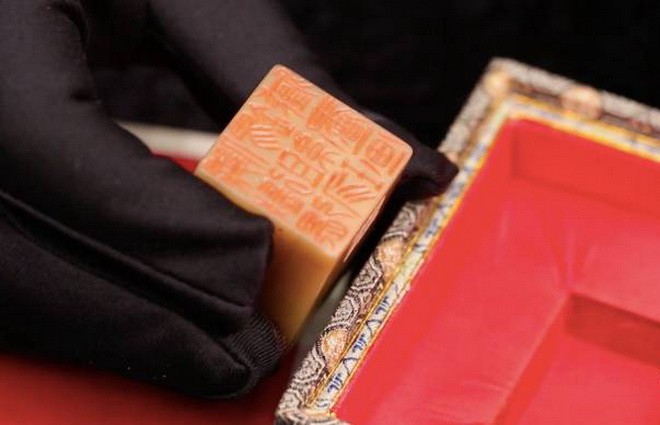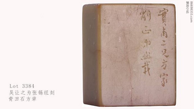 吴让之为张锡组刻青田石方章,小林斗盦旧藏,印文:仪征张锡组珍藏书画,2017北京匡时秋季拍卖会,方寸乾坤——印石篆刻专场,成交价264.4万元。