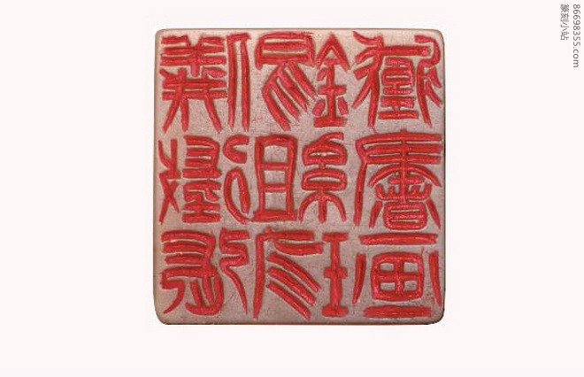 这方印章是吴让之成熟期的一方代表作,小林斗盦的旧藏。内容刻的是「仪征张锡组珍藏书画」,这方印在张锡组旧藏的书画上也有盖过。