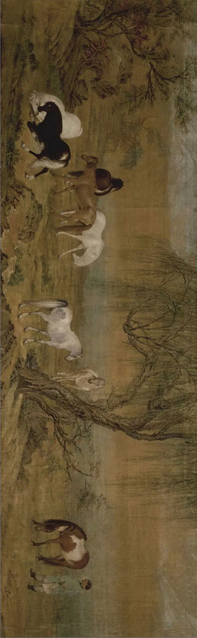 郎世宁《郊原牧马图卷》 51.2×166cm 北京故宫博物院藏