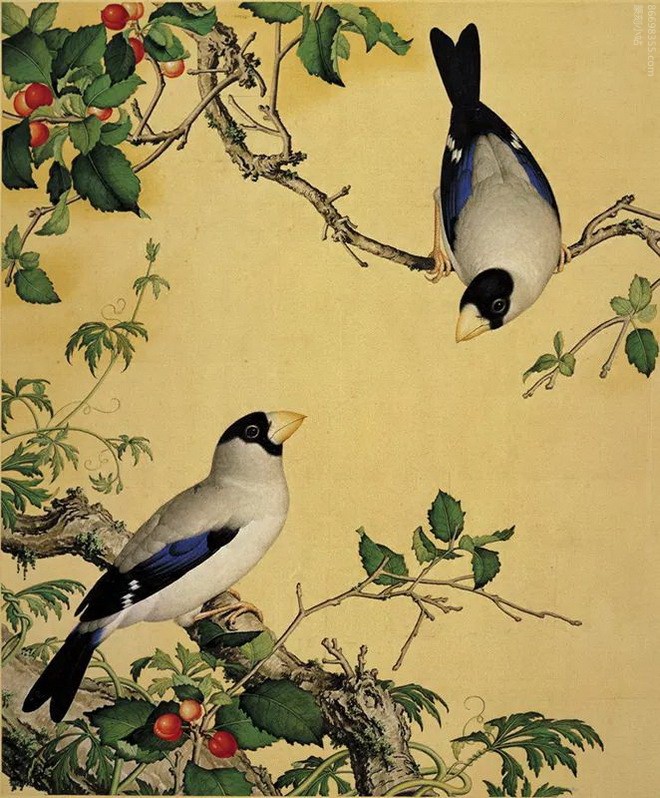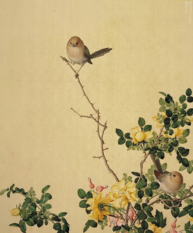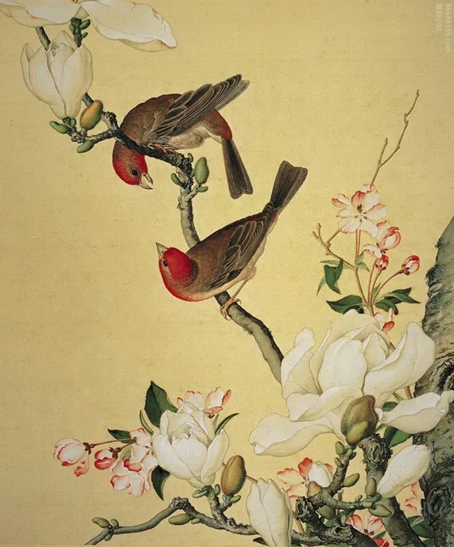 郎世宁《仙萼长春图册-海棠与玉兰》