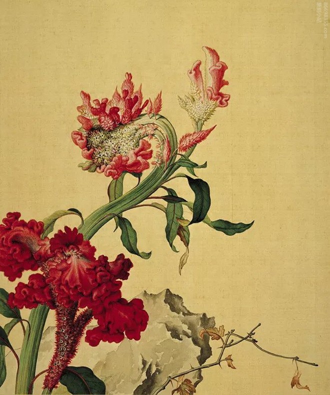 郎世宁《仙萼长春图册-百合纏枝牡丹》