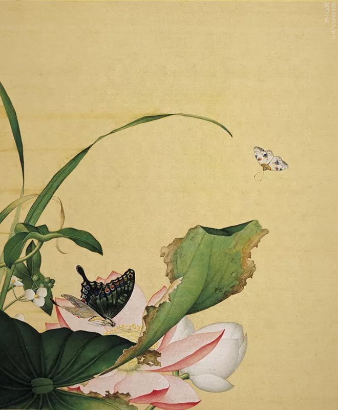 郎世宁《仙萼长春图册-虞美人与蝴蝶花》