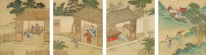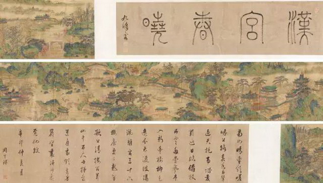 仇英在山水画领域同样取得骄人的成就。他的山水画最初师从周臣,取资南宋院体山水画风,形体坚实,笔墨劲健酣放,以水墨淡彩和小青绿为主。他的绘画多姿多彩,却未能形成一种鲜明的主体性风格范式,因此他的艺术对后世的影响,大不肖沈周、文征明。然而,仇英在不长的艺术生涯中,创作了大量精美的作品,并在人物画、青绿山水画等领域,皆有超截止前贤、开拓新格的独诣之处,他的名字和画艺在绘画史上永耀光芒。后继仇英画法者,有沈硕、程环、尤求、沈完等。