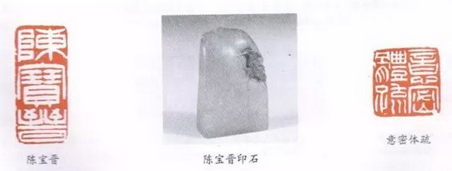 最近从南京收藏家汪维寅君藏印中新发现两方吴让之佚印,其一为白文词句印《意密体疏》;其二是白文姓名印“陈宝晋”(见《守研斋珍藏》画册P46)。这两方印都是其岳父泰州收藏家蔡澧泉(已故)1957年于泰州古玩旧书肆慧眼识珠从真赝杂陈的一堆旧印中淘得,也是他一生节衣缩食购得的书画印章藏品之一。这两方吴让之遗印为迄今已出版的三种印谱:《师慎轩印谱》、《吴让之印谱》(方去疾编,上海书画出版社,1983.4版)、《吴让之印存》(李早主编,西泠印社,1988.5版)所未收,也是研究吴让之文章从未提及的佚作,是研究吴让之篆刻艺术的宝贵实物资料。今著文推介以飨同好。