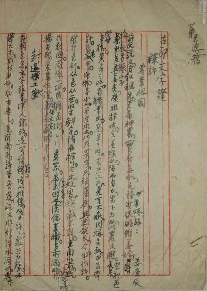 1946年黄宾虹《古印文字证 释许》手稿(局部)