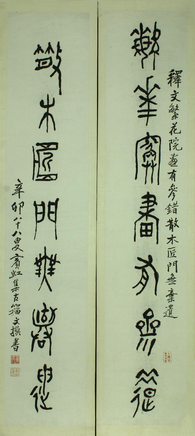 1951年黄宾虹集古籀文“繁花散木”七言联