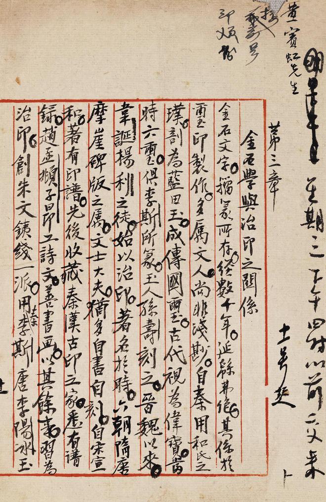 1928年黄宾虹广西夏令讲学会金石学讲义 《第三章 金石学与治印之关系》 手稿(局部)