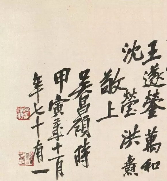 悃愊:至诚朴实;华:浮夸。至诚而不虚浮。形容真心实意,毫不虚假。出自《后汉书·章帝纪》:“安静之吏,悃愊无华。”时年七十一岁的吴昌硕刚加入九老会。并任上海书画协会会长,在其好友啸庐先生将赴都之际,缶老书此赠予啸庐先生,表现了吴昌硕对啸庐先生极高的人品评价。