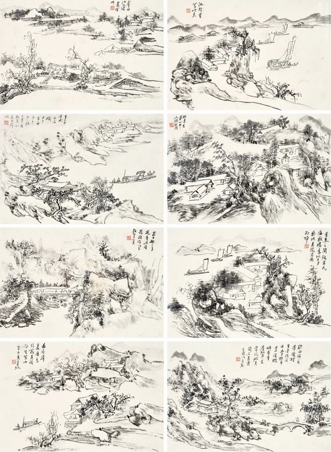 黄宾虹 忆景山水册 册页(八开)水墨纸本 癸未(1943年)作