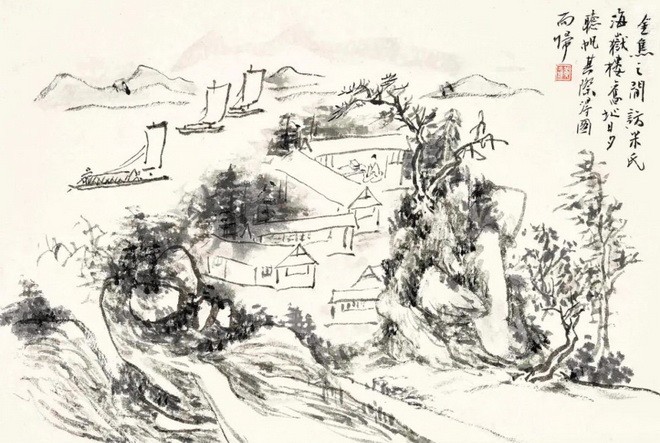 (五)金焦之间访米氏海岳楼旧址,日夕听帆其际,得图而归。