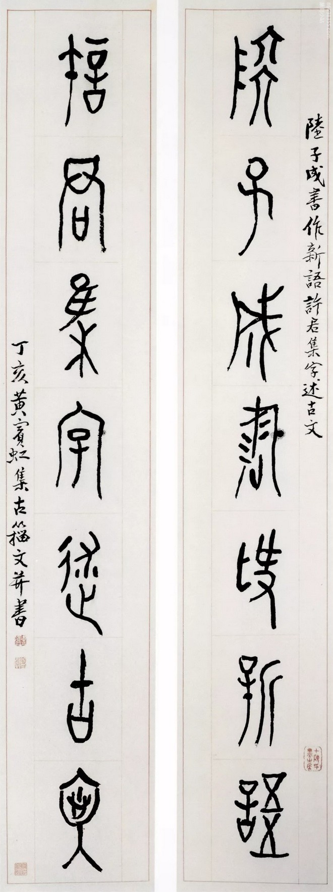 释文:陆子成书作新语 许君集字述古文 丁亥 黄宾虹集古籀文并书