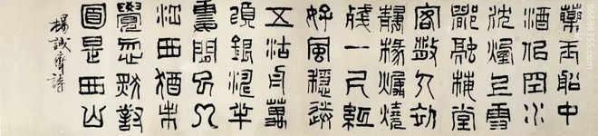 释文:药玉船中酒似空 水沉烟上雪都融 梅堂客散人初静 椽烛烧残一尺红 好风稳送五湖舟(船)万顷银涛半霎闲 已入江西犹未觉 忽然对面是西山 杨诚斋诗