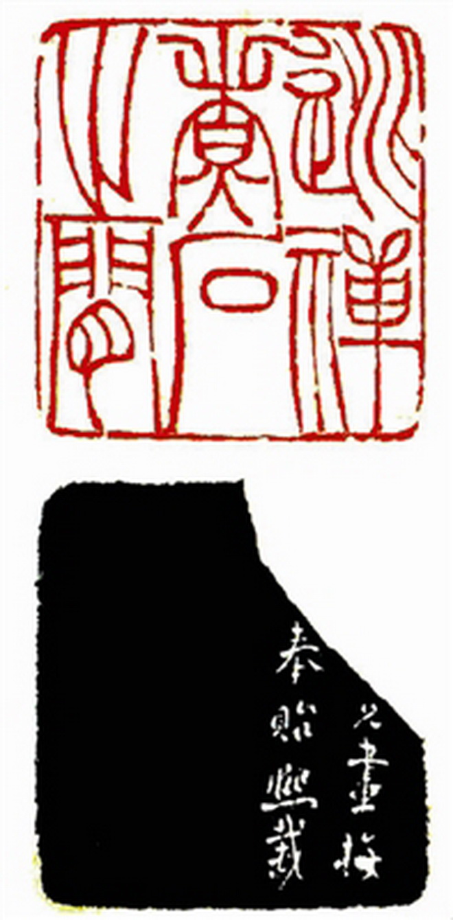 关于该印印文“逃禅”“煮石”,印坛存有二解:其一,作字面解释,“逃禅”即是逃遁入禅,为佛教禅宗的修炼行为;“煮石”为“煮白石”的简称,典出晋人葛洪《神仙传·白石先生》,烧煮白石为粮,言指道教修炼方法。印文所谓“逃禅煮石之间”,乃是失意文人看破红尘的说辞,悠游于佛道之间,摒弃浮华,遁世离俗,进入自在忘求的空灵境界。