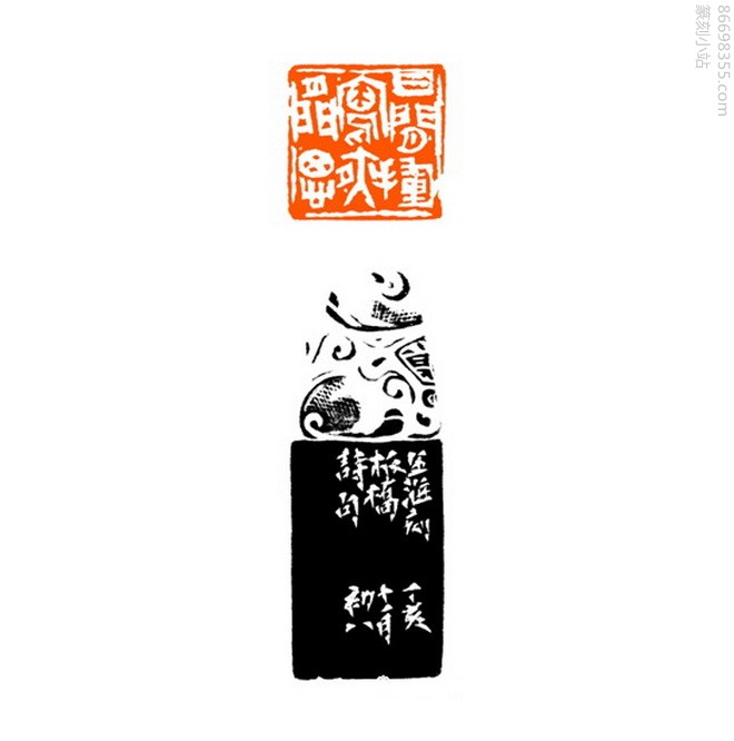 先生园丁生涯42年,这一时期先生教书育人,同时也是他艺术修养积累的重要时期,先生以严谨的治学态度,在古文字、历史、文学等相关领域取得一系列成果。先生成名早,但为人低调,奉行“用之则行,舍之则藏”,凡事追求过程的尽善尽美,却从不计较利益得失。此时心底对先生油然而生的敬意让我突然有创作一方印章的冲动,印入脑际的是一方气势雄健的“二师将军章”。讲坛与印坛不是战场,而我觉得,一个运筹帷幄、驰骋沙场的将军形象可以让我们更深刻地解读苏老师。