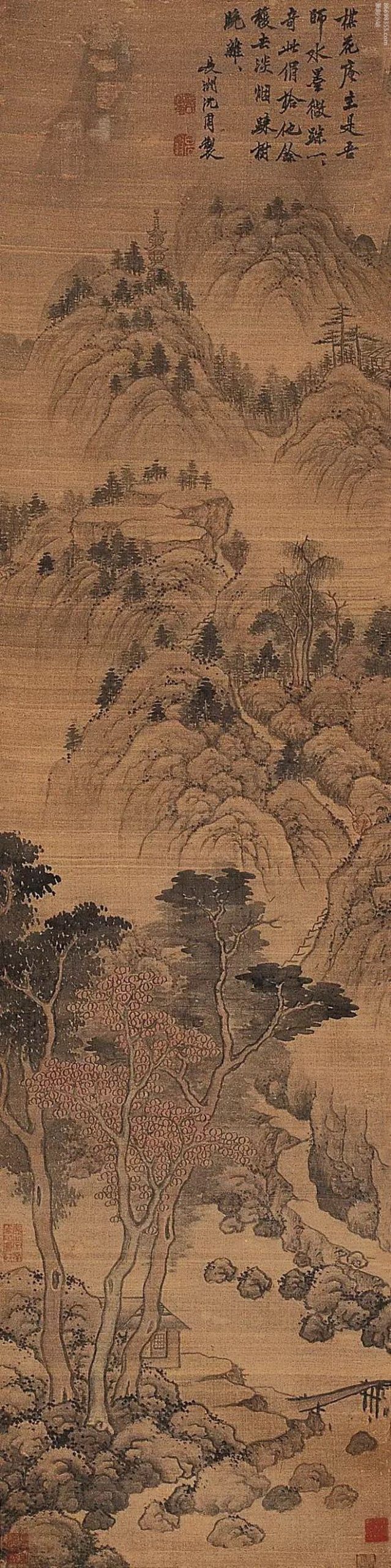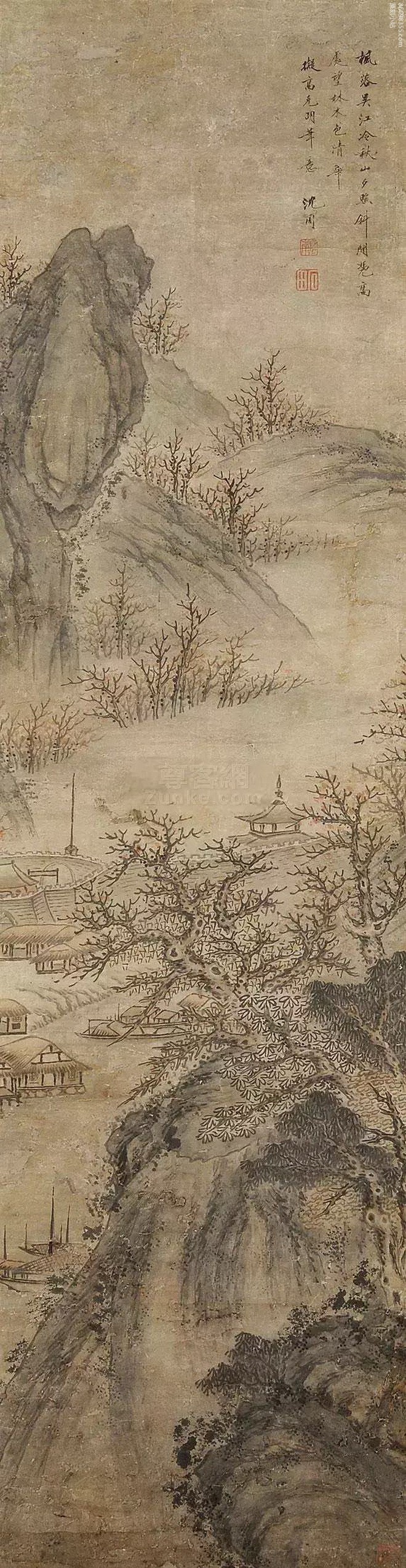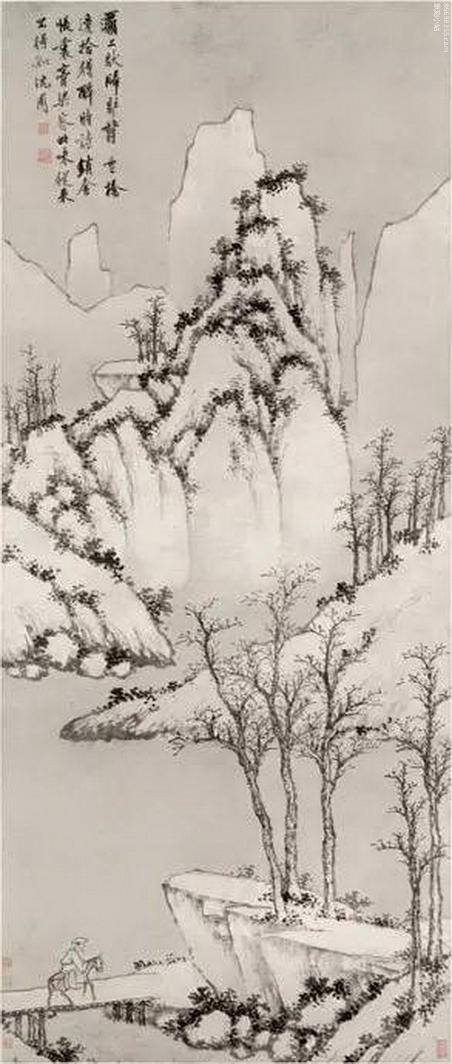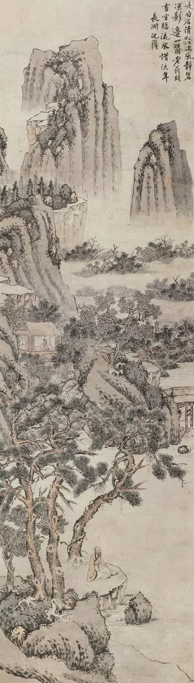 沈周(1427-1509),吴门四家之首,明代杰出书画家,江苏苏州)人。不应科举,长期以事绘画和诗文创作。擅山水,取法董源、巨然,中年以黄公望为宗,晚年醉心于吴镇。兼工花卉、鸟兽。人物,名重当时。书学黄庭坚,诗学白居易、苏轼、陆游。笔意出入变化,用笔劲捷有力,融揉参杂,具自家风貌。写意花卉鸟兽甚佳,无愧明四大画家。