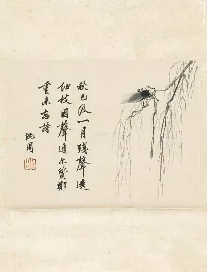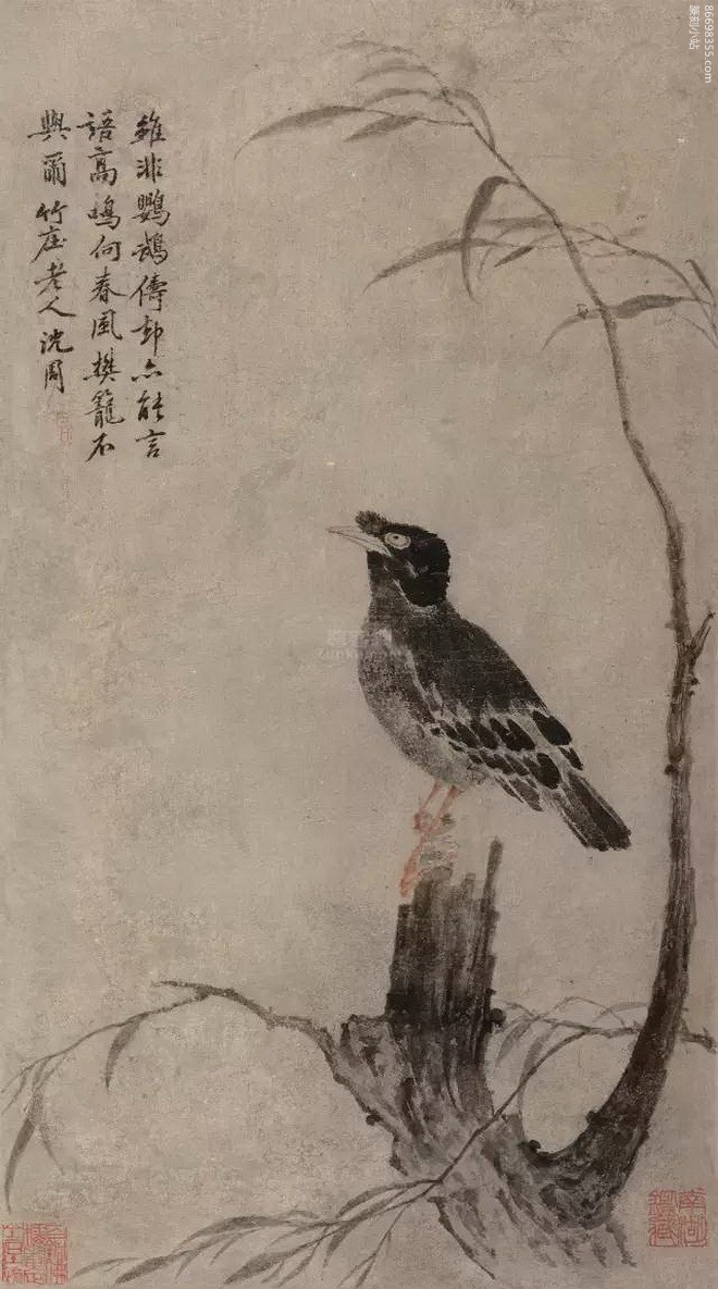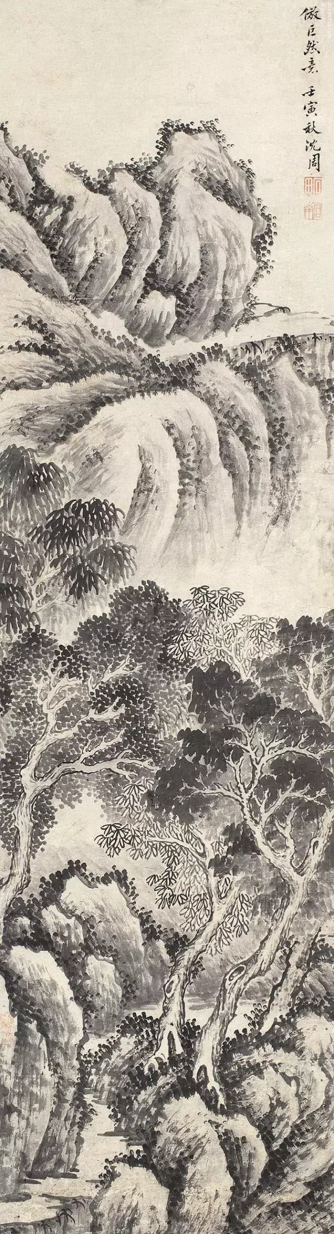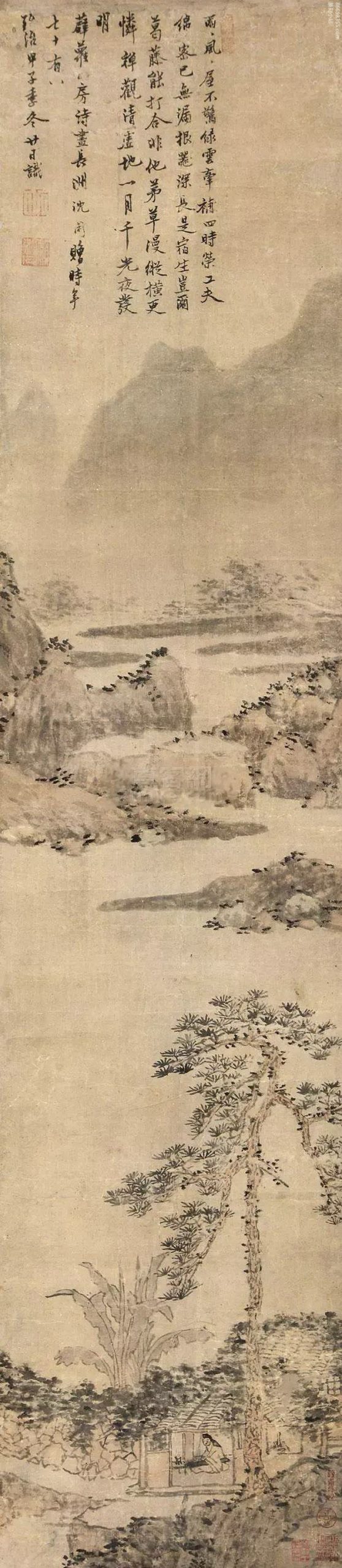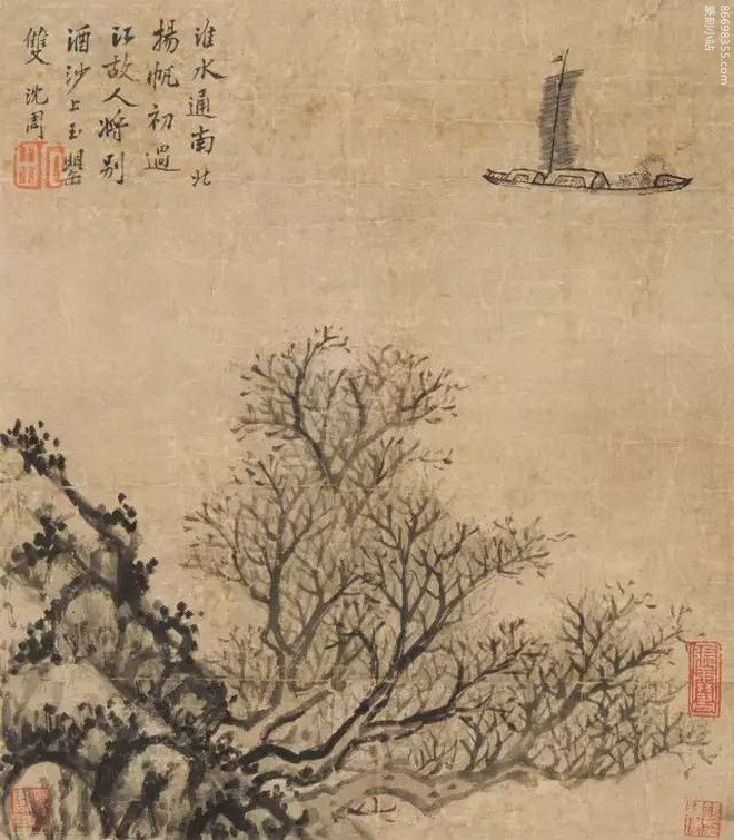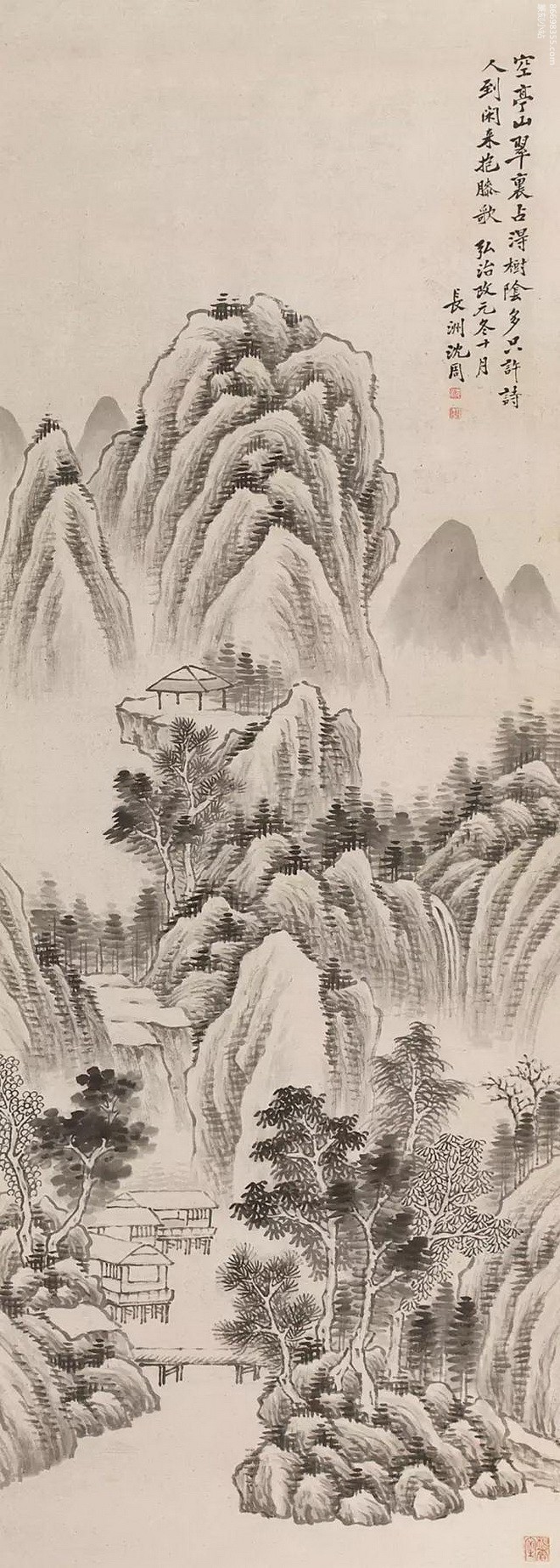 沈周(1427-1509),吴门四家之首,明代杰出书画家,江苏苏州)人。不应科举,长期以事绘画和诗文创作。擅山水,取法董源、巨然,中年以黄公望为宗,晚年醉心于吴镇。兼工花卉、鸟兽。人物,名重当时。书学黄庭坚,诗学白居易、苏轼、陆游。笔意出入变化,用笔劲捷有力,融揉参杂,具自家风貌。写意花卉鸟兽甚佳,无愧明四大画家。