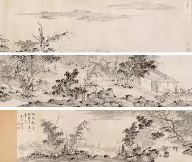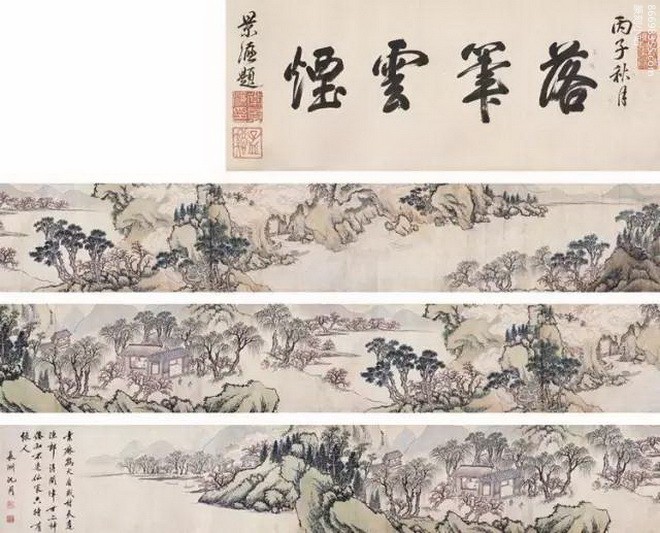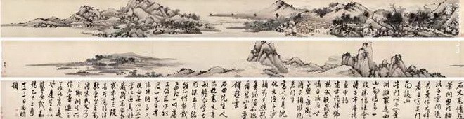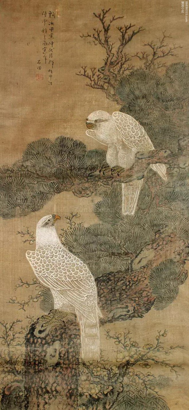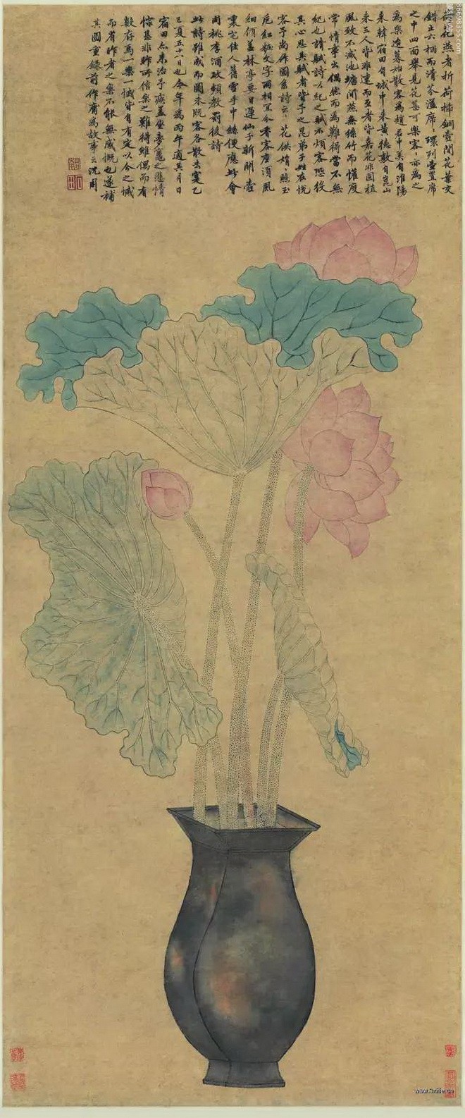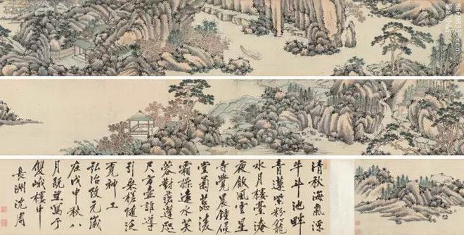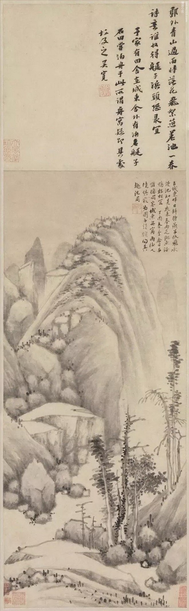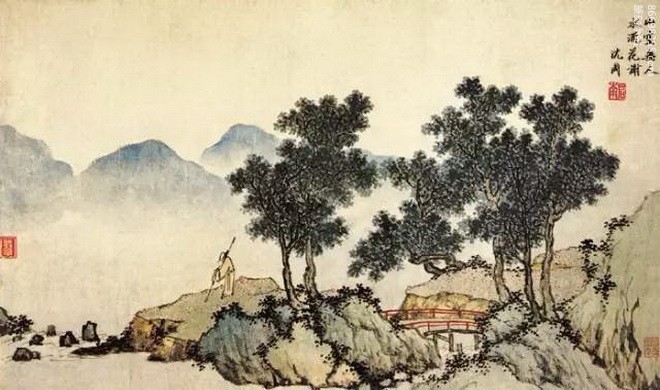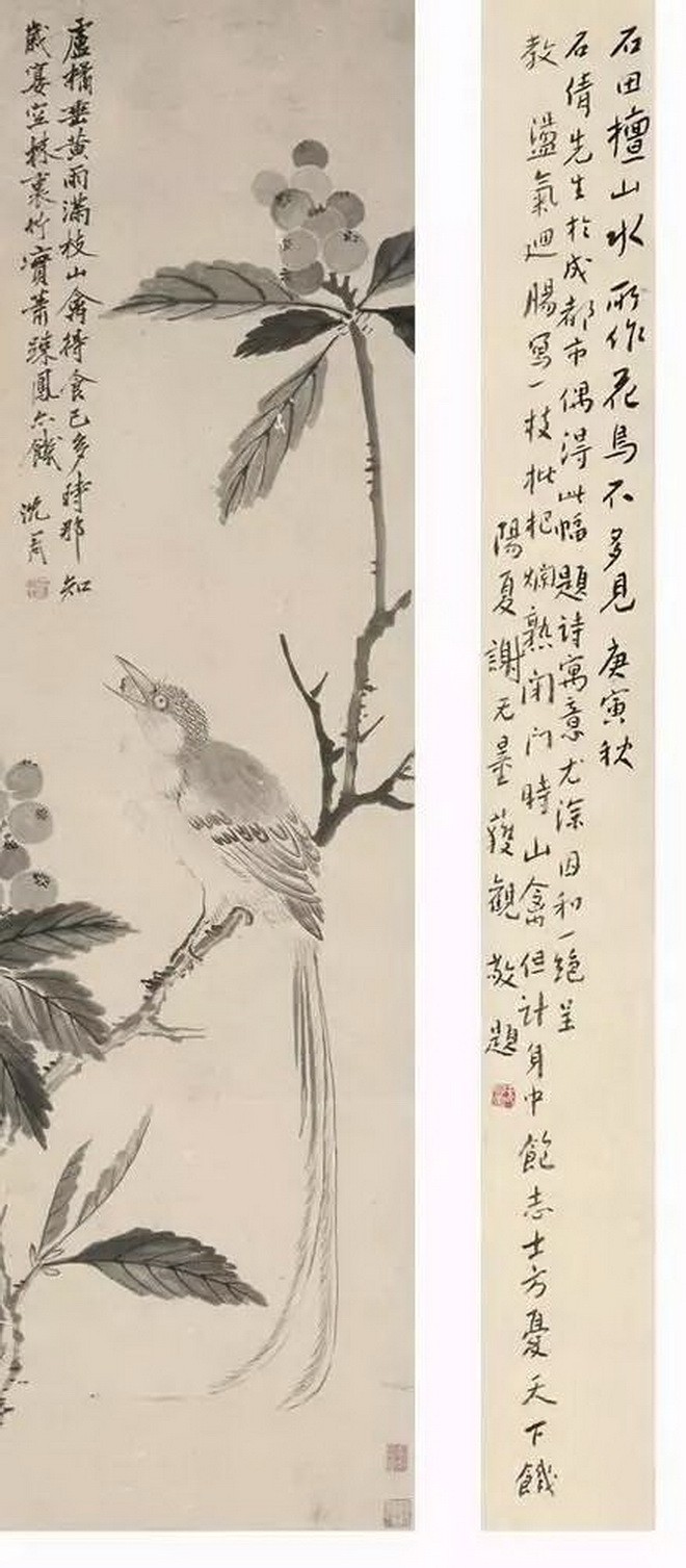 沈周(1427-1509),吴门四家之首,明代杰出书画家,江苏苏州)人。不应科举,长期以事绘画和诗文创作。擅山水,取法董源、巨然,中年以黄公望为宗,晚年醉心于吴镇。兼工花卉、鸟兽。人物,名重当时。书学黄庭坚,诗学白居易、苏轼、陆游。笔意出入变化,用笔劲捷有力,融揉参杂,具自家风貌。写意花卉鸟兽甚佳,无愧明四大画家。