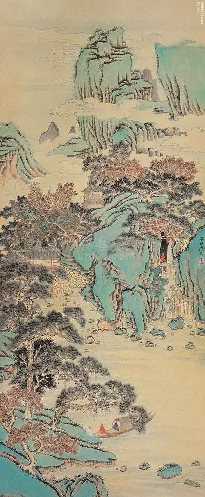 仿大痴山水图 纸本设色 纵115.5厘米横48.5厘米 上海博物馆藏