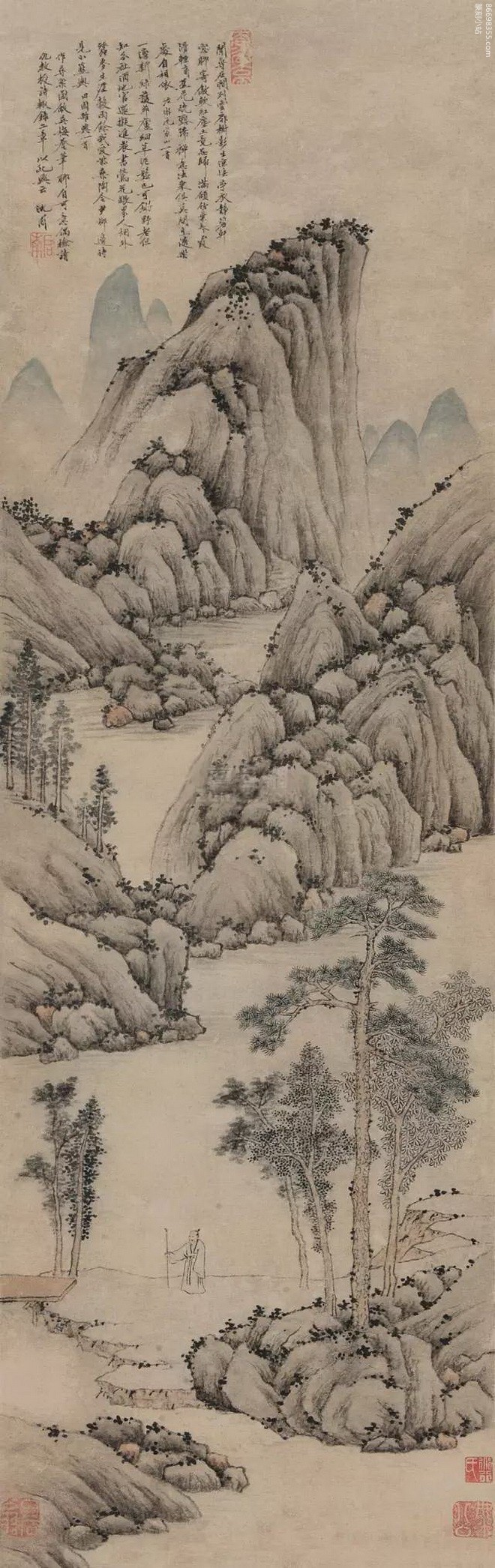 明 沈周 庐山高图 纸本设色193.8×98.1公分 台北故宫博物院藏