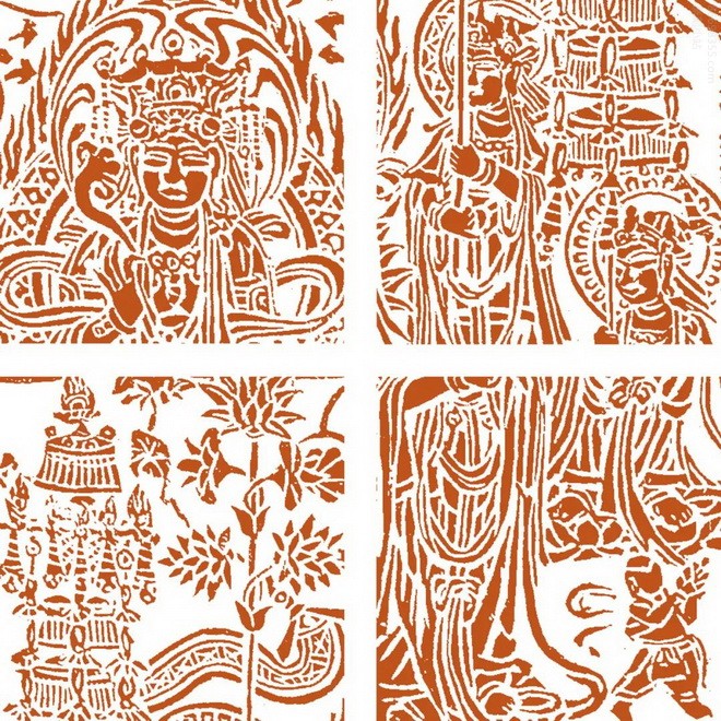 叶青峰的佛像印细密纷繁,常见有法相类佛教人物威严相、本生故事等佛教故事画面,动作流畅、形神兼备。任何一方创作的形象皆有原典支撑,法度森严。参考选取的来源包括了中外历代佛教壁画、唐卡、石窟雕塑造像、水陆画等等,都必须要有具体的持修出处,甚至来历方面的学术考据。