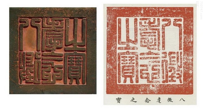 印玺 7.4 x 6.1 x 6.1 ; 盖盒 9.1 x 9.1 x 8.6 cm