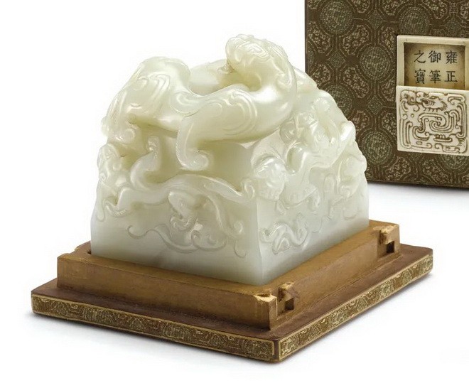 康熙(印钮);雍正(印面) 雍正帝御宝白玉九螭钮方玺