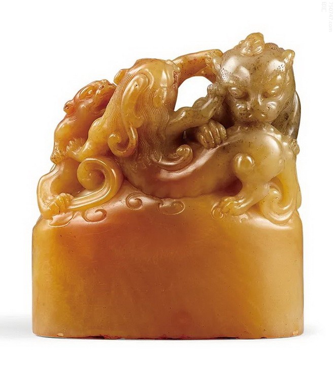 昌化鸡血石苍龙教子钮宝玺“敬胜怠”