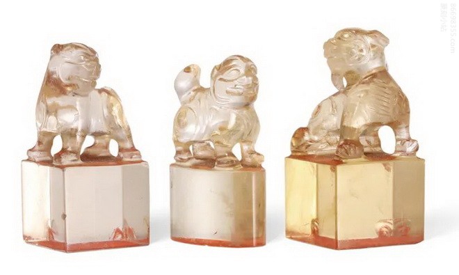 御制黄水晶“德日新”、“所宝惟贤”、“乾隆御笔”组玺三方(原配紫檀印匣)