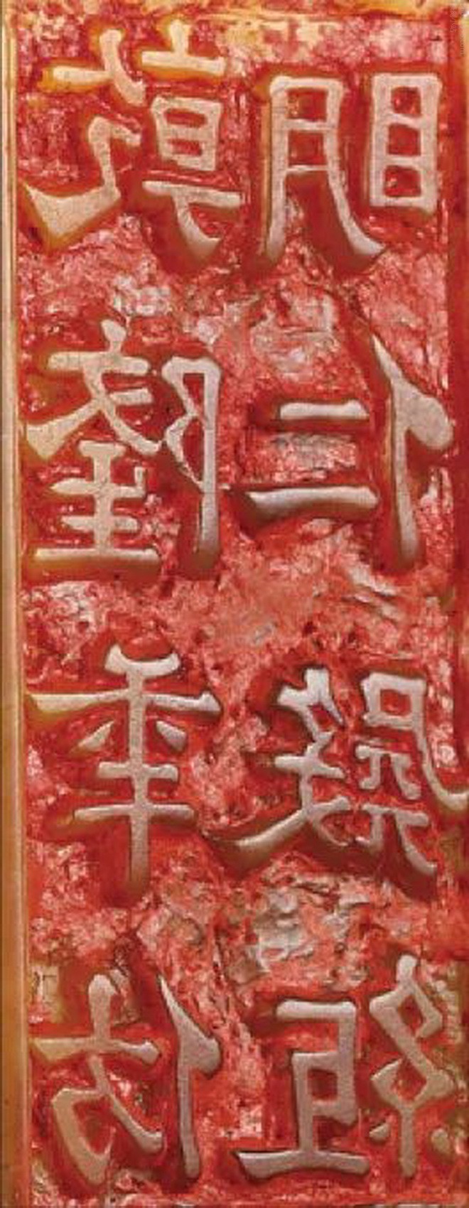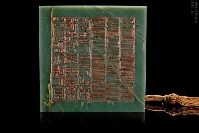 〈乾隆 铜点金异兽钮“乾隆御览之宝”宝玺〉,选材特殊,为精铜铸造,是乾隆帝御用玺印中唯一一方铜质印章,制于乾隆三年,作为乾隆登基后最初制作的玺印,象徵身份的意义更加重要,大概有3.8公斤。