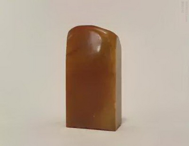 “三希堂”玺,清乾隆,田黄石质,光素随形长方形玺,汉文篆书。面宽2.3cm,长4.2cm,通高8.5cm。