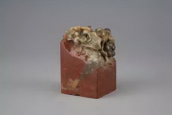 寿山石雕灵芝葡萄“恭俭惟德”玺全形之一