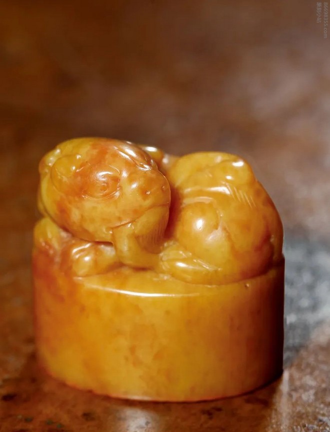 748 清·田黄石古兽钮椭圆章